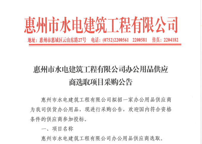 惠州市水電建筑工程有限公司成立于一九六四年四月,隸屬惠州市水務(wù)集團有限公司,是一家國有綜合性施工企業(yè),主營水利水電工程、房屋建筑、市政工程等施工業(yè)務(wù)。公司擁有水利水電工程施工總承包一級、建筑工程施工總承包一級、市政公用工程施工總承包一級、公路工程施工總承包三級,公路路基、路面及建筑裝修裝飾專業(yè)承包二級,環(huán)保工程、機電安裝、河湖整治、輸變電工程專業(yè)承包三級等經(jīng)營資質(zhì)……